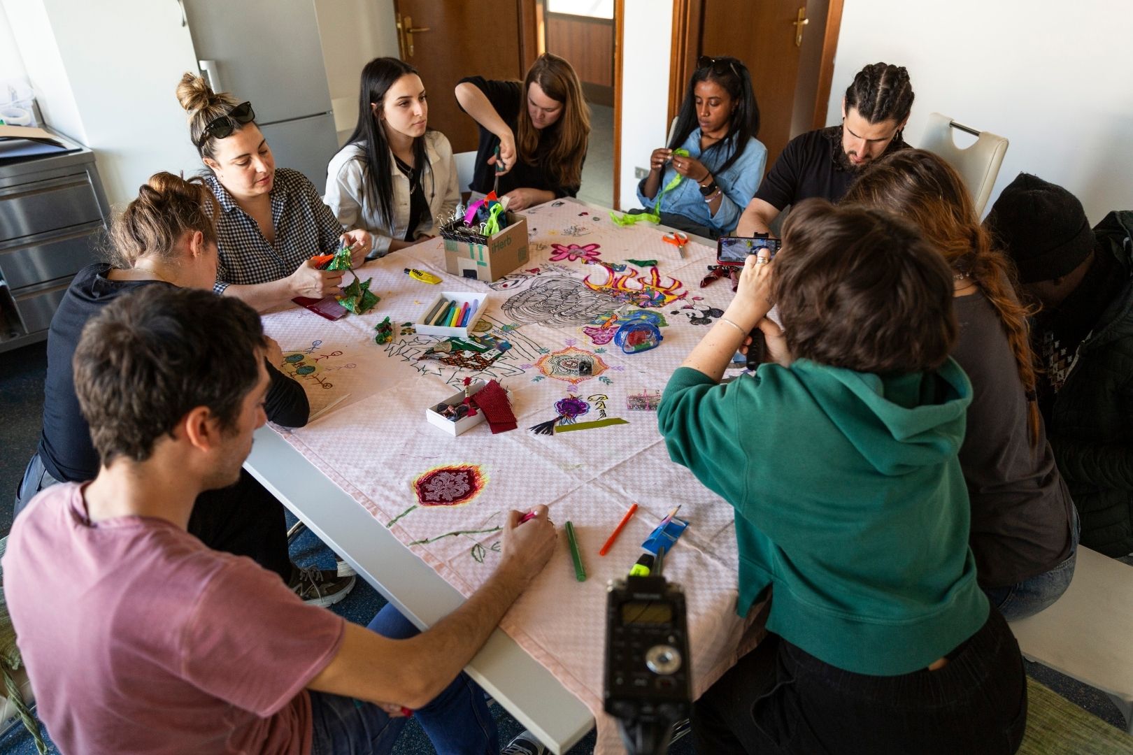 Nell’ambito di questa collaborazione, il progetto si è sviluppato attraverso due laboratori: “Corpi Tessuti” di Daria Akimenko e “Timeline Collettiva” di Marina Baldo.