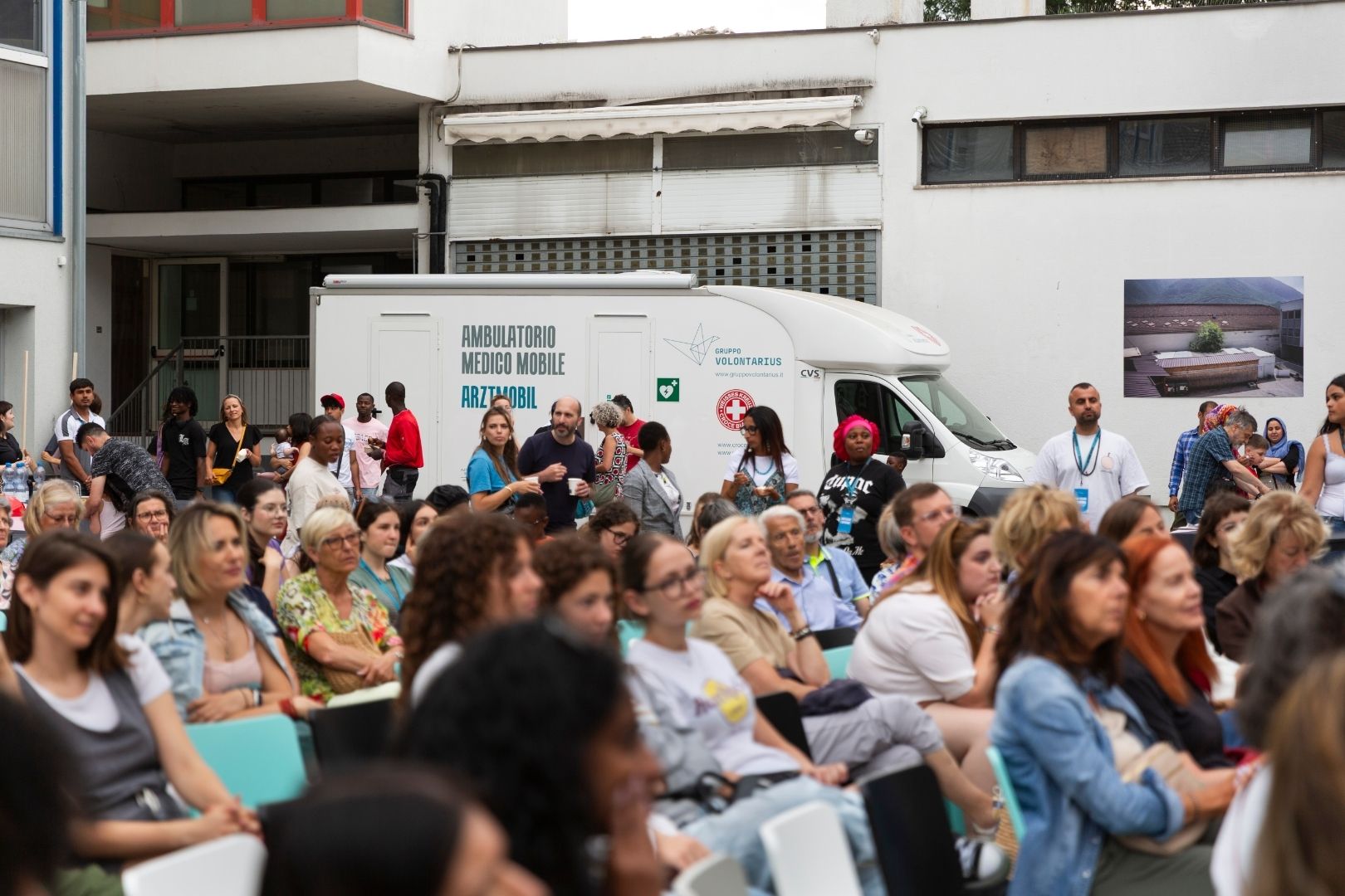 L’evento si è aperto con un’azione sonora-teatrale: la cantante Greta Marcolongo e l’attrice Sandra Passarello, accompagnate dalle note di Gianpaolo Chiriacò, hanno dato vita a letture teatrali e azioni sonore che hanno raccontato le storie delle persone accolte e accompagnate dai servizi del Gruppo Volontarius.